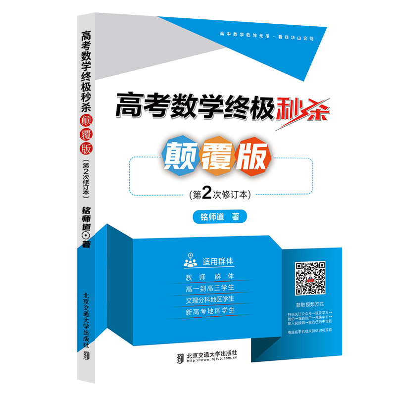 本书是以解题秒杀方式为载体,用网课语言和风格编写的适用性强的高中数学秒杀辅导用书。本书基于“跟谁学”在线教育网站教学实践,面向120分以上的学生群体, 同时对公立学校一线教师及网校、辅导班高中数学老师也有一定的启发和借鉴意义。希望此书可以引领一种新的学习思路——用秒杀的方式讲解一些对学生真正有用的、有些深度的、能引发学生思考的内容。本书共有六章,分别是:攻克高中数学之基、函数大板块、三角函数大板块、解析向量大板块、不等式大板块、立体几何大板块。本书所有题例的讲解基本为原创逻辑,并且尽量呈现逻辑严密步骤,同时本书解答风格网课化,不繁琐,不琐碎。